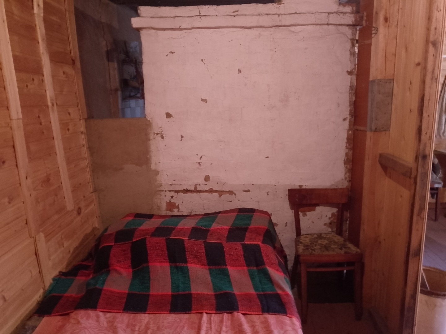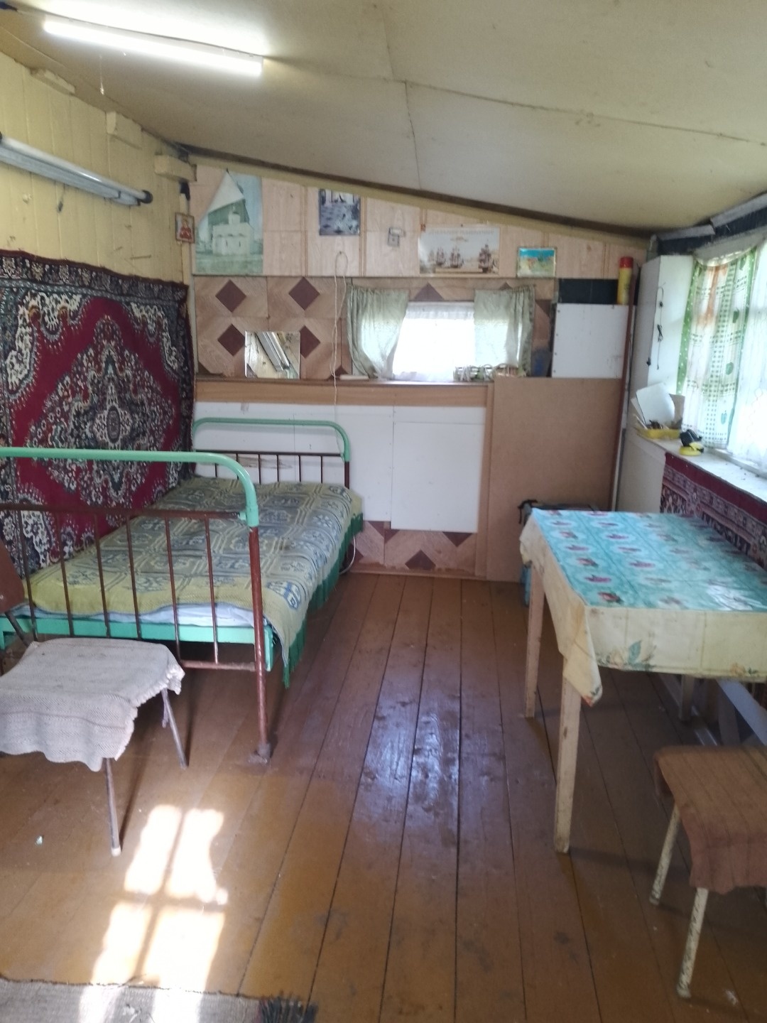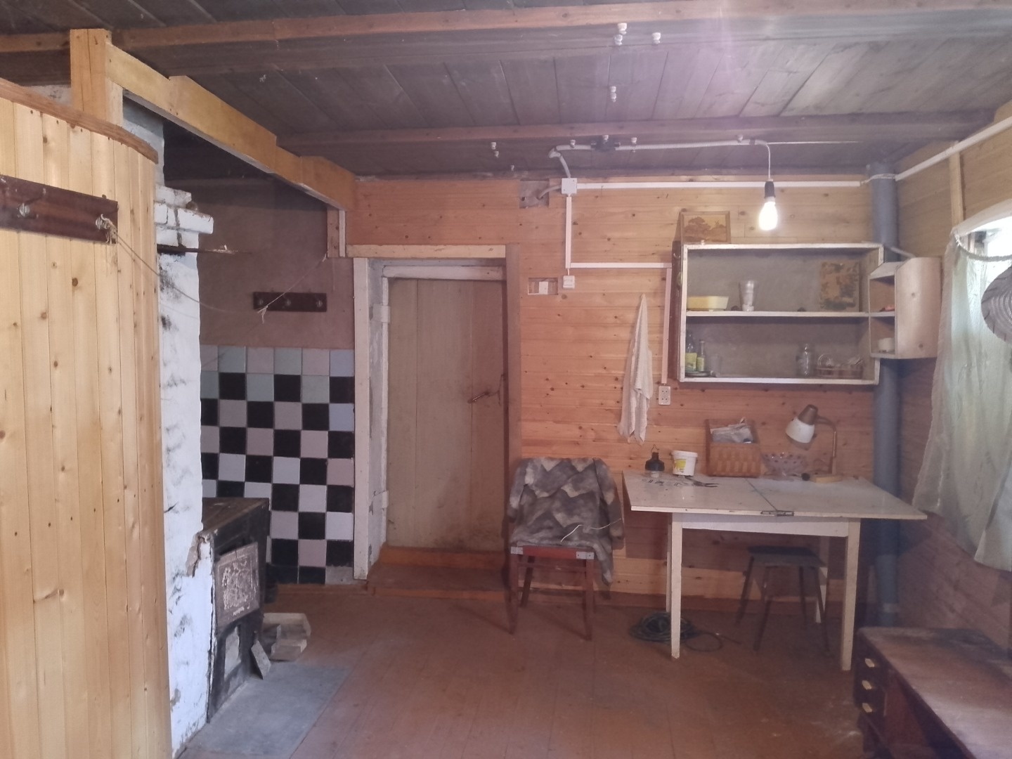 Комната обшита вагонкой, отопление печное, печка Голландка в рабочем состоянии.